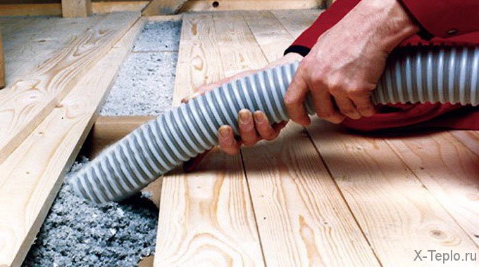 Наносят эковату сухим и влажным способом. Первый нашел свое применение при утеплении горизонтальных, наклонных перекрытий, а также коробчатых конструкций стен.