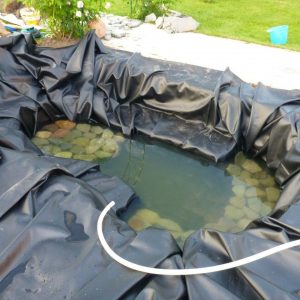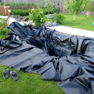 Гибкая гидроизоляция представляет собой специальный морозостойкий материал – бутилкаучуковую пленку (мембрана EPDM). Это наиболее оптимальное решение для водной системы любого размера, сложности и формы. Высокая эластичность позволяет не только подчеркнуть любой рельеф, но и безболезненно купаться в таком пруду, а также населять водоем рыбами – пленка полностью экологична. Срок службы такого основания составляет 30 и более лет. Качество воды, необходимое для безопасности купания, обеспечивается за счет биофильтров и системы дезинфекции.