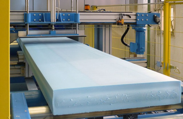 Вспенивание смеси заканчивается при ее контакте с воздухом. Следующие этапы изготовления – охлаждение утеплителя и его стабилизация. Завершает производственный процесс нарезка термоизолятора на куски установленного размера и его упаковка с помощью термических станков.