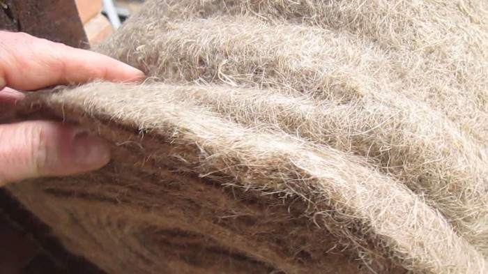 В Дании проведены исследования, в ходе которых установлено что срок службы качественного джутового утеплителя составляет более 75 лет. Какой лучше утеплитель этого типа? Нужно обращать внимание на качество волокна. Качественный джутовый утеплитель содержит минимум отходов производства: разорванную мешковину, пыль, веревки, ветошь. Такой войлок вопреки распространенному мнению тоже растаскивают птицы.