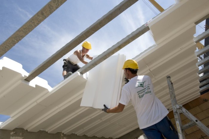 Применение пенопласта существенно облегчает процесс создания основания дома, ведь сокращаются временные и финансовые издержки на распалубку, изоляцию и утепление бетонной ленты. Прекрасные изоляционные свойства пенопласта обеспечивают эффект термоса, что ускоряет твердение бетона.