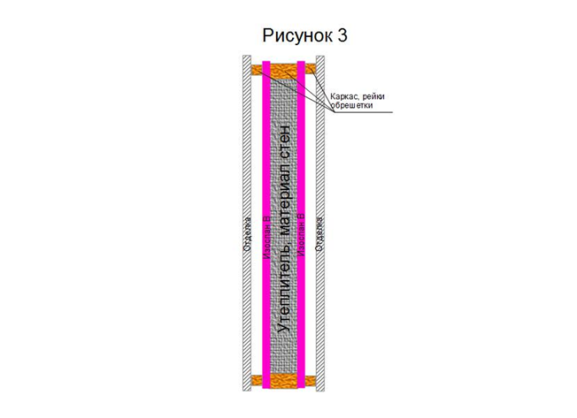 Поверх утепления нужно обеспечить вентиляционный воздушный промежуток (зазор) 50 мм с помощью контрреек, на которые можно устанавливать чистовую облицовку.