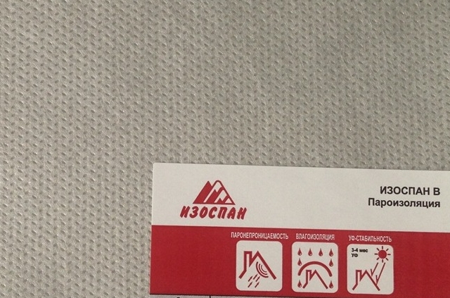 Пленка не теряет своих свойств от воздействия прямого солнечного ультрафиолета на протяжении 4 месяцев. Изоспан В выпускается в рулонах, полосами шириной 1,4 и 1,6 метра и общей площадью 35м2 и 70 м2. Какой ширины и площади выбрать материал зависит от геометрических размеров защищаемых поверхностей.