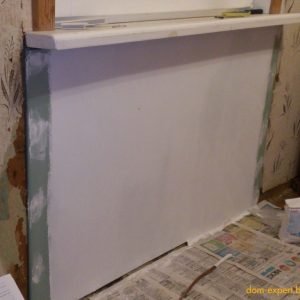 Снаружи закрыл стену гидроветрозащитной мембраной, хотя это кому-то покажется лишним. Набил обрешетку под вентфасад – в дальнейшем думаю обшить пристройку имитацией бруса. Изнутри пристройку планировалось зашить гипсоволоконными плитами, но в Солигорске такого материала в продаже не оказалось. Везти же их на наемном транспорте из Минска в Солигорский район экономически не выгодно. Поэтому зашивал стены доступным влагостойким ГКЛ. До момента обшивки предусмотрел отверстие для дымохода турбированного газового котла (Vaillant, 24 кВт). Сразу поставил гильзу с запасом, чтобы сделать надежную теплоизоляцию вокруг трубы. Все стыки с пароизоляцией проклеены алюминиевым скотчем. Сейчас стены пристройки частично облицованы плиткой, котел установлен и запущен 30 декабря 2015 года. Потолок в пристройке подвесной из гипсокартона. Под ним спрятал все кабеля в гофре. В санузле уже установлена и работает сантехника.