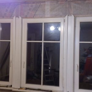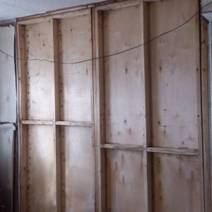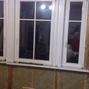 Поводом для радости стало состояние деревянной части каркаса – все сухое, целое, крепкое. Для уверенности покрыли в некоторых местах, где при старых окнах были подтеки, антисептиком. Глубина каркаса всего 9 см, хотя я ожидал хотя бы 10см. Старый утеплитель выбросил (отлично горит в печке!), на его место установил каменную вату Paroc, закрыл ее паронепроницаемой пленкой, прибил старую фанеру. В местах крепления радиаторов в каркас были вставлены закладные бруски, чтобы к ним потом прикрутить кронштейны крепления. Кусок стены за радиатором сразу зашил зашпаклеванным гипсокартонном. Им, вплотную к фанере, будут в итоге обшиты все стены.