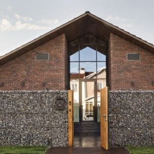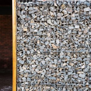 Так же с помощью габионной технологии можно сделать и менее дорогостоящие заборы, если в качестве основного заборного полотна использовать традиционные материалы: профнастил или доску, а из габионов — только декоративные столбы и цоколь забора.