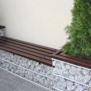 С помощью габионов в качестве подпорной стенки легко сделать приподнятую террасу посреди ровного участка или оформить перепады рельефа на террасированном участке. При использовании габионов для оформления мест отдыха (беседок, террас, патио) — такая конструкция также позволяет в едином стиле решить проблему посадочных мест. Для этого верхнюю грань невысоких конструкций закрывают деревянными сиденьями, а тех, что повыше, — столешницей. Габионы можно использовать в качестве лестниц, закрывая верхнюю часть ступенью из различных материалов.