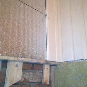 Все стыки и скобы от степлера проклеивают фольгированным скотчем. Чтобы добиться эффекта «термоса», между фольгой и вагонкой делают воздушный зазор, закрепляя саморезами сверху фольги рейку толщиной 18-20 мм и уже потом – вагонку.