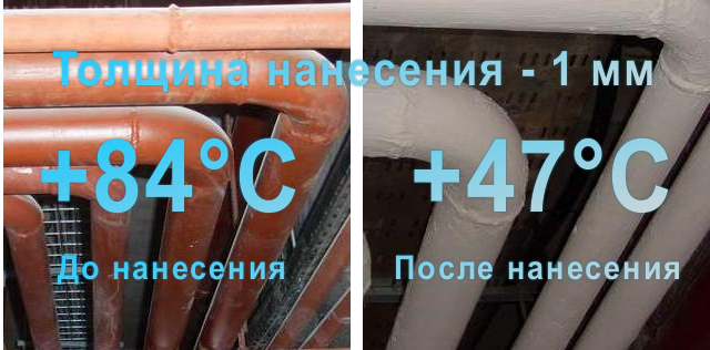 - минимальная толщина слоя покрытия при высочайшей защите (слой в 1 мм по эффективности равен 50 мм теплоизоляции из минераловатных материалов);