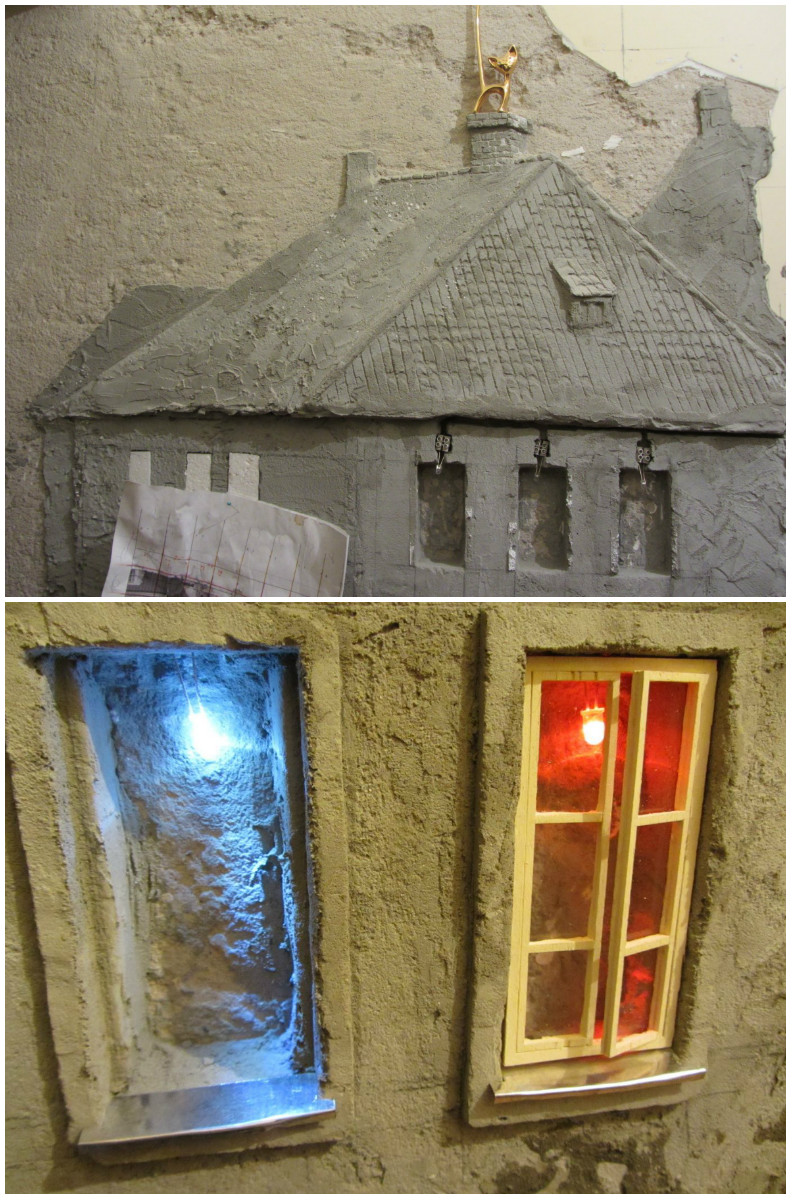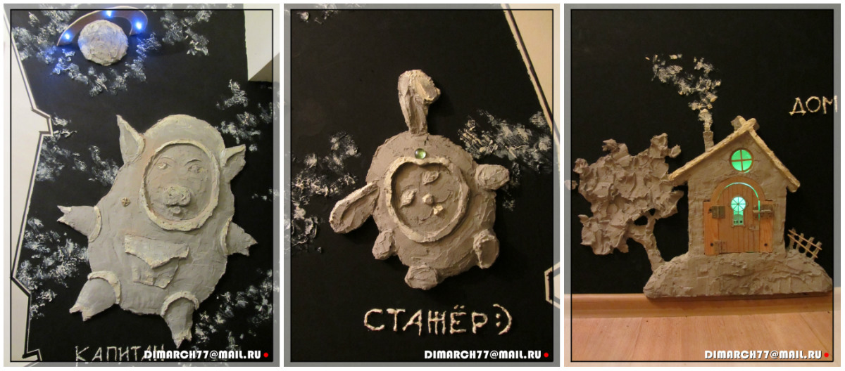 «Идея рельефа со свинками родилась из старой шутливой открытки, где была прописана фраза: «Чтоб никто не подложил вам свинью, их всех нужно отправить в космос». Вот, так я себе это и представил, — улыбается Дмитрий. — За стенкой домика находится скрытая розетка с подсветкой. И защита от детей, и ночная подсветка. А светодиоды потребляют минимум энергии, освещение включается отдельными кнопками».
