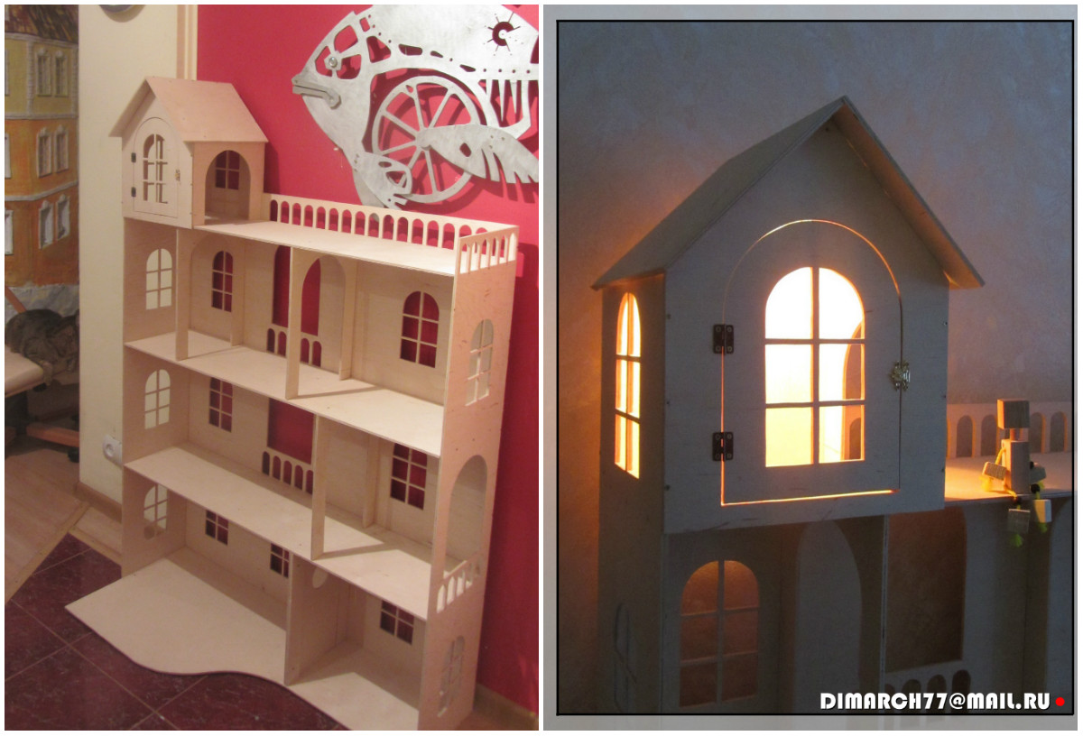 Позже стали обращаться и родители детей, с просьбой сделать что-то подобное для детских комнат — так появились кукольные домики.