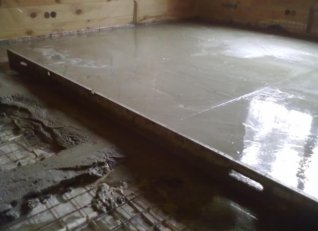 Спустя сутки выставляются маяки, заливается чистый пол, толщиной не менее 5 см. При необходимости можно уложить водяной пол, залив его вместе со стяжкой толщиной минимум в 7 см.
