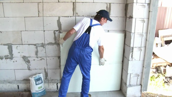 Технологически изоляция своими руками выглядит следующим образом: кладется наружный слой стены толщиной в один кирпич, затем 10-см слой пенопласта, завернутого в полиэтиленовую пленку, затем внутренний — такой же толщины. В силу того, что строятся две отдельные стены, необходимо через каждый метр перевязывать их по всему периметру здания кладочной сеткой. При этом используются куски пенопласта размером 1х1 м.