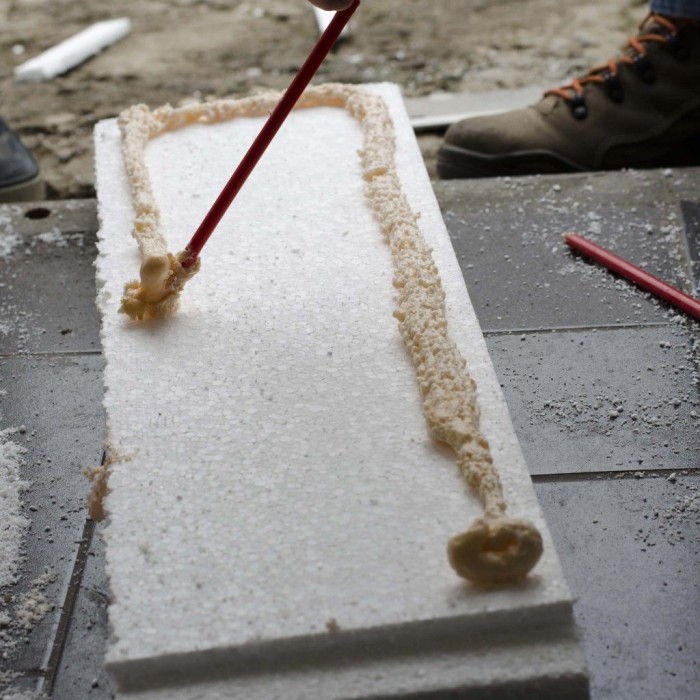 Для работы с пенопластом может использоваться клеевая смесь на основании полимерцемента с минеральными добавками и наполнителями. Такой клей обладает такими свойствами как быстрота твердения и пластичность, паропроницаемость и быстрота сцепления с материалом.
