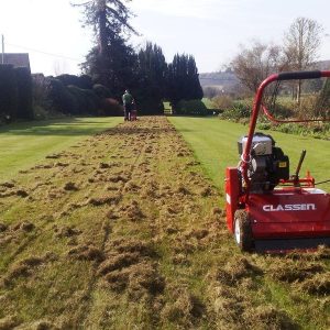 Вычесывать небольшой газон можно и граблями. Для больших площадей понадобится скарификатор. Он снабжен двигателем и травосборником, поэтому очищение газона будет не тяжелее работы с газонокосилкой.