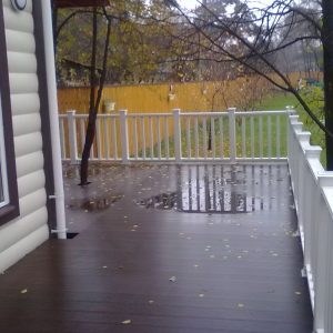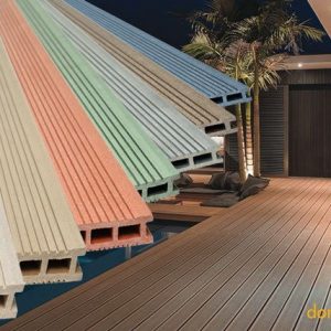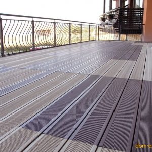 Находят своих поклонников и террасные доски из ДПК (древесно-полимерного композита). ДПК производится из древесной муки с добавлением модификаторов и красителей. Монтаж террасных досок прост, их элементы каркаса с креплением позволяют создать ровное «безгвоздное» пространство. Покрытие досок морозостойкое. Наличие канавок, предусмотренных конструкцией, создает антискользящий эффект.