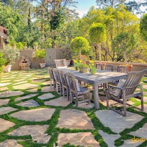 Еще один привлекательный материал для отделки террасы – натуральный камень. Как и в случае с древесиной, он будет гармонировать с природным окружением и даст возможность создавать интересные сочетания. Обычно используется каменная плитка из гранита, сиенита и базальта. Но более прочны сланцы. Песочные породы требуют специального ухода. Так или иначе, все породы и виды натурального камня разнятся в своей степени изнашиваемости.