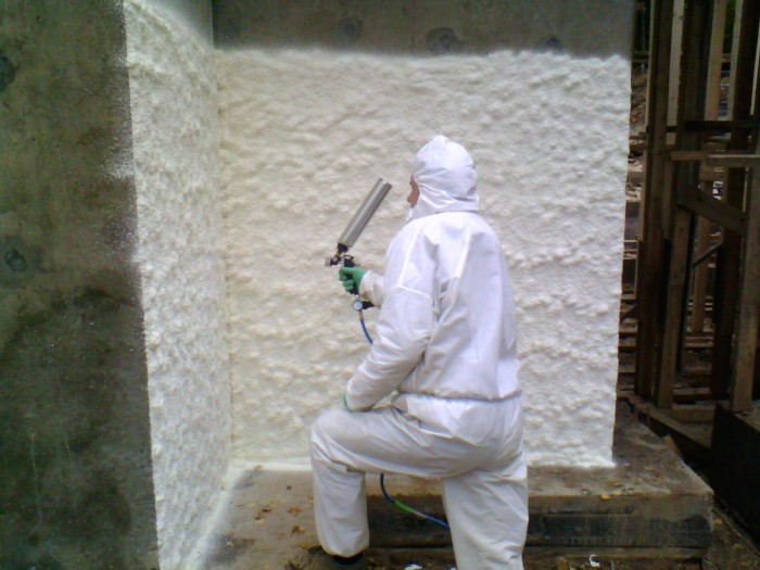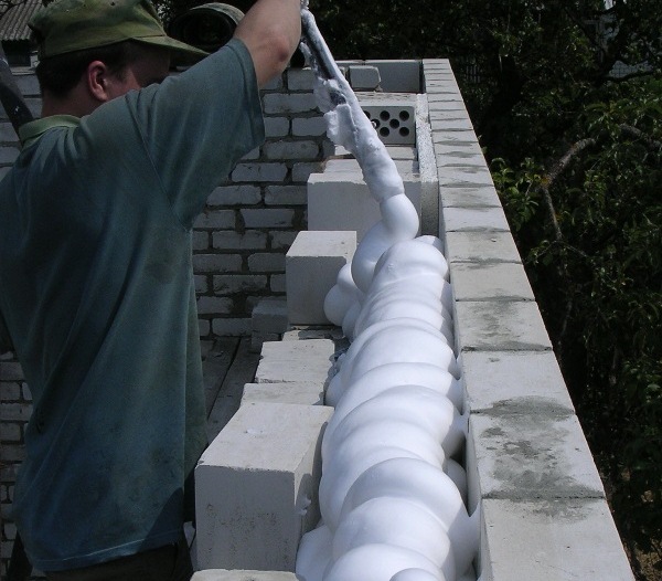 Утепление можно производить на любом этапе строительства. Полы с помощью пены можно проводить после того, как установлены лаги. Между ними пространство заполняется пеноизолом, то же самое можно выполнить при утеплении потолка дома. Не стоит забывать о том, что пеноизол подвержен механическим воздействиям. Поэтому на полу он должен быть закрыт половой доской после застывания. На крыше следует предусмотреть проходные мостики, чтобы не нарушить структуру застывшего теплоизолятора.