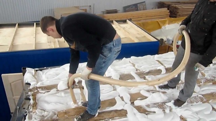 Низкий вес изделия обеспечивается за счет высокого содержания воздуха в структуре материала. Переход в пенообразную форму происходит за счет смешивания основных компонентов и сжатого воздуха.