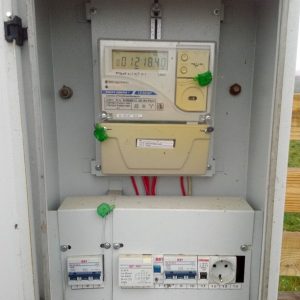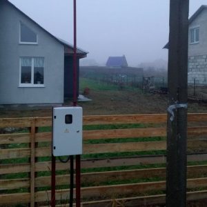 Вслед за дорожниками потянули свои кабеля электросети – уже в мае напротив моего дома стоял электрический столб. В срочном порядке сделал подключение. Для этого обратился в «одно окно» смолевичских электросетей. Там сделали проект подключения стройплощадки, сказали что купить. Список необходимого был не длинный — металлический ящик, металлическая труба, швеллер, электросчетчик, автоматы, узо. В один воистину прекрасный день приехали электрики, сварили стойку из швеллера, вкопали ее. На стойку повесили ящик со счетчиком и подключили к линии электропередач. От стойки до угла дома вручную прокопал траншею глубиной метр. Купил кабель. Его протянул в полиэтиленовой (как для водопровода) трубе и уложил в траншею. Электрик соединил им электрощит и ящик с автоматами в доме на входе. Дальнейшей разводкой проводки по дому занялся позже. Этот этап, с покупкой материалов и оборудования обошелся около 400 у.е. (говорят, теперь это дороже обходится).