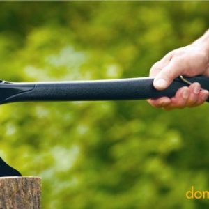 За счёт расклинивающего эффекта и лапок, обхватывающих топорище, полотно надёжно фиксируется и не слетает во время работы. Тем, кто не хочет заниматься поисками подходящей палки, предлагается приобрести особо прочное деревянное топорище с уже готовой прорезью на конце.