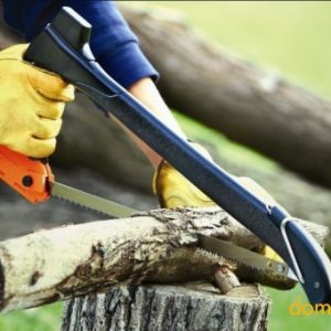 По сути инструмент представляет собой обычный топор, в топорище которого сделан пенал для хранения пильного полотна длиной около 40 см.
