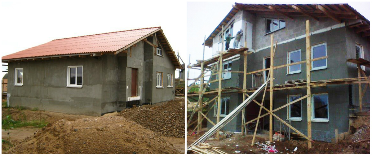 Тогда, примерно 10 лет назад, вышел новый закон и все резко принялись строиться, чтобы землю не отобрали. Продавать «голые» земельные участки запретили — только с незавершённым строительством. Начался страшный ажиотаж: белорусский газосиликат надо было ждать по очереди очень долго, цемент вообще отпускали только при наличии утвержденного проекта на строительство дома. Народ даже из России ввозил газосиликат — лишь бы скорее «коробку» поставить на участке. Многие покупали старые срубы в деревнях и перевозили себе на участок. Керамзитобетон мы тоже брать не хотели — на него тоже были очереди, да и дороговато выходило. Т.е. нас сама жизнь толкала к поиску какого-то бюджетного и «быстрого» варианта.