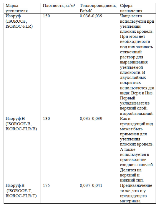 Понятно, что каждая модификация утеплителя Isoroc-Изоруф имеет определенное предназначение для теплоизоляции разных конструкций здания. Рассмотрим характеристики материала и их особенности в сводной таблице.