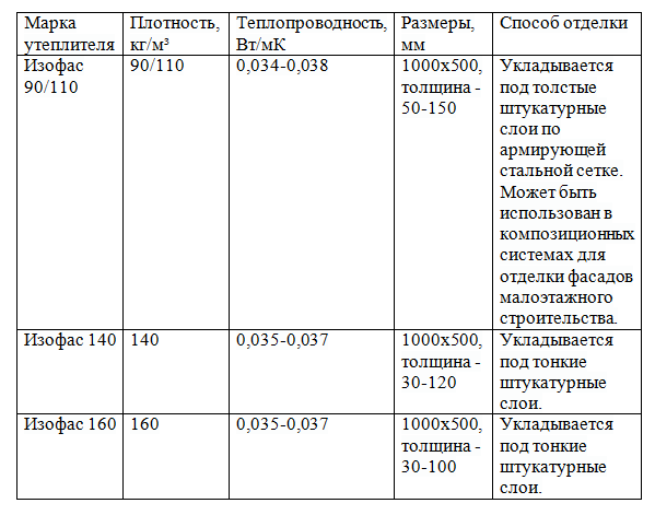 Этот материал, как и изолайт, имеет три модификации. Все они используются только для утепления фасадов и отличаются друг от друга техническими характеристиками и способами их отделки.