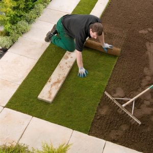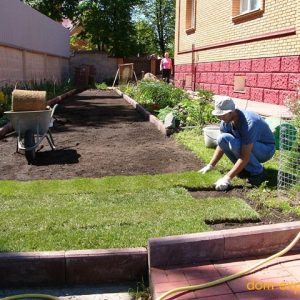 После подготовки основания ролики раскладываются в шахматном порядке по тому же принципу, как и кирпичная кладка, чтобы срезы не совпадали. Это делается с той целью, чтобы сделать более незаметными линии стыков. Каждый последующий дерновый пласт нужно крепко прижимать к предыдущему. Это практически так же просто, как клеить обои – в нужном месте кусочки дернины подрезаются по форме укладываемых границ и плотно стыкуются между собой.