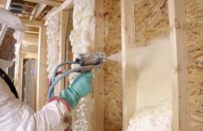 Пенополиуретаном можно утеплять неровные поверхности, такой монтаж занимает минимальное количество времени. Несомненным плюсом является отсутствие стыков при монтаже. Полиуретан не подвержен воздействию биологический среды, но легко воспламеняется, вследствие чего происходит выделение токсичных газов.