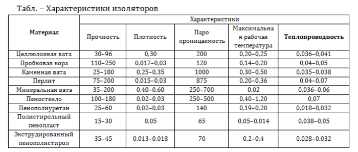 Для того чтобы выбрать необходимый теплоизоляционный материал, нужно опираться на его основные характеристики. В таблице представлены свойства всех основных теплоизоляторов.
