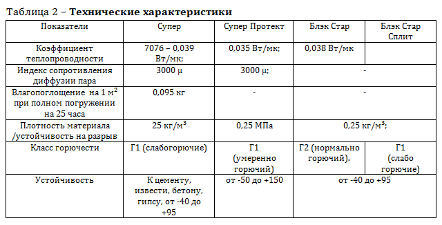 Технические характеристики позволяют эксплуатировать его в температурном диапазоне окружающей среды от -40°С до +70°C. При этом теплоноситель в системе отопления может иметь температуру, которая находится в диапазоне от -40°С до +100°C. Максимальный уровень звукового давления, которое проникает сквозь этот утеплитель, равен 32 дБ. Теплопроводность данного изолятора не превышает 0,038 Вт.