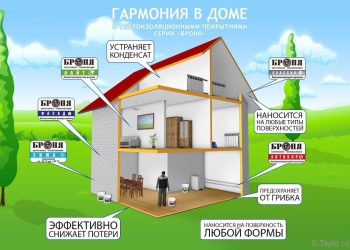 Сверхтонкую краску «Броня» эффективно можно применять при утеплении следующих конструкций: