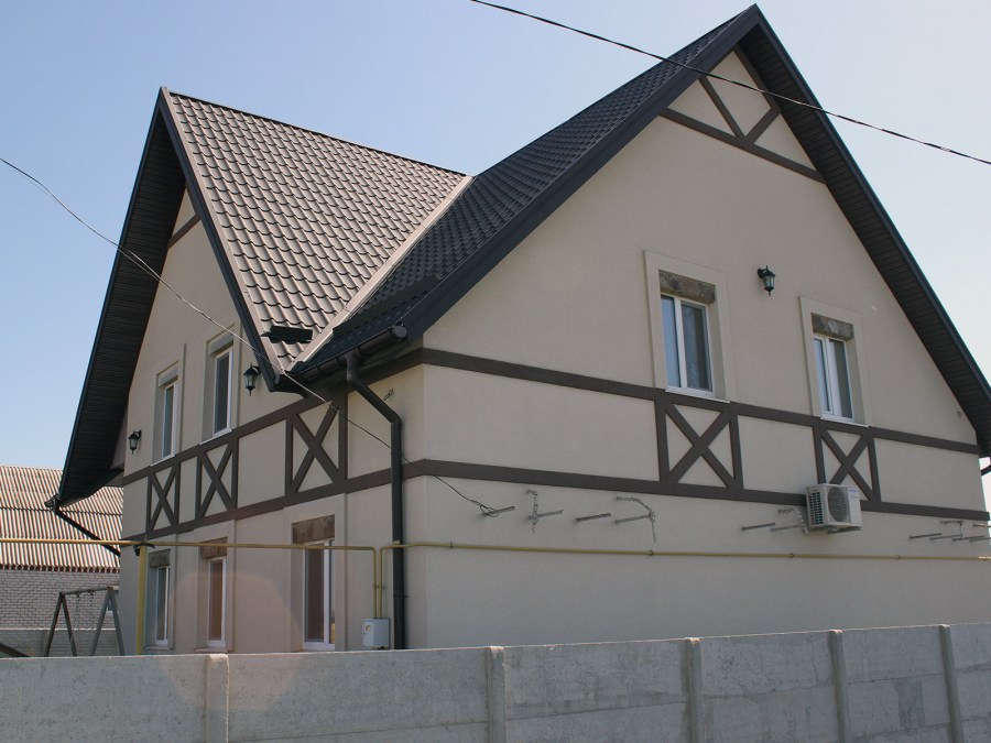 - Финал – вся площадь фасада покрывается армирующей сеткой, листы укладываются внахлест по 10 см. Сверху сетка штукатурится. После полного застывания штукатурки можно приступать к финишной отделке декоративными покрытиями.