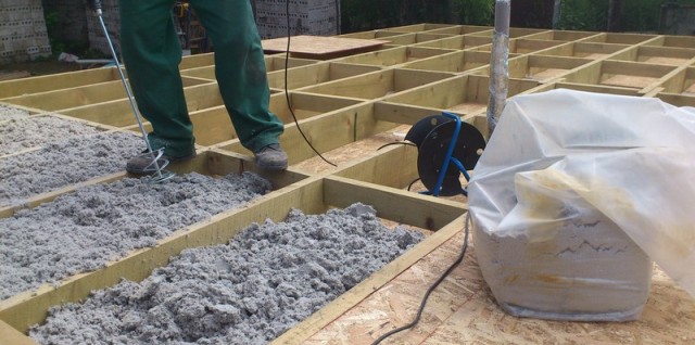 Существует два способа целлюлозного утепления: «сухой» и «мокрый». Наклонные поверхности и полы лучше утеплять по первому варианту. В замкнутых полостях прорезается отверстие и при помощи специального оборудования эковата задувается внутрь конструкции. Также можно проводить процесс руками, без применения спецтехники. Для этого достаточно рассыпать материал по обрабатываемой поверхности, при необходимости уплотнив его.