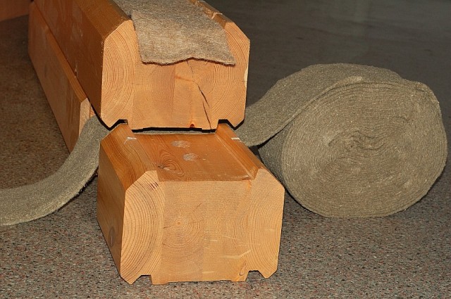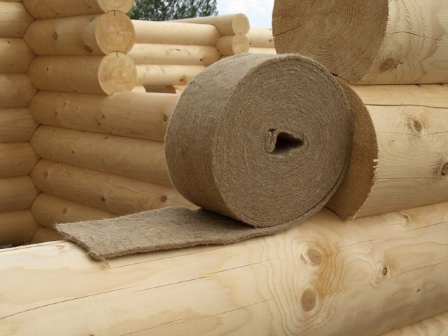 Достойным утеплителем для деревянных домов из бревна и бруса является материал на основе льна, который укладывается между венцами, тем самым препятствуя проникновению холода и процессу гниения на стыках древесины. Для таких работ чаще всего применяются ленты и войлок.