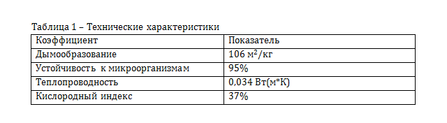 Кислородный индекс составляет 37%, приближаясь к полимерным, самозатухающим материалам.