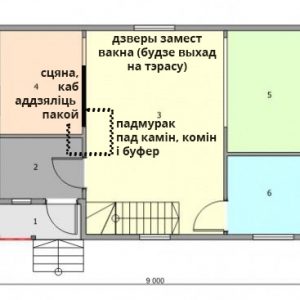 - Замест акна на першым паверсе – ПВХ-дзверы (для выхаду на будучую тэрасу)